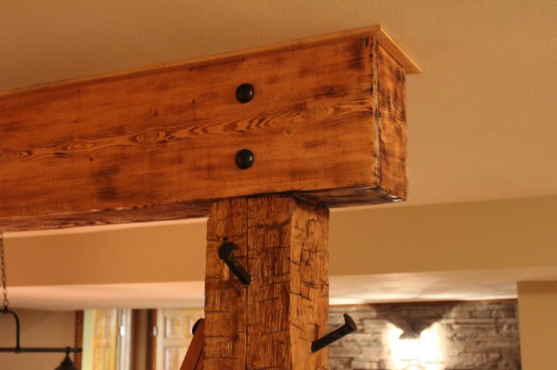 - Custom post and I beam trim and covers using white oak log and hemlock