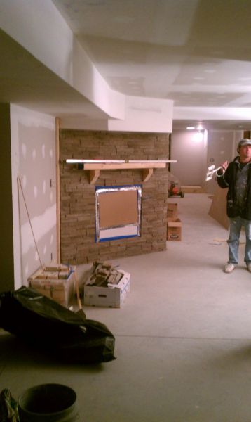 This basement was designed by RBM Enterprises and the customer. Changes were made during the construction process to meet customer specifications And to overcome unforeseen obstacles. All of the wood trim is rough-cut Hemlock that was finished on-site. The custom railing was made from a shagbark hickory tree that was collected on the customer's property.This basement presented many different challenges that we overcame through attention to detail and communication with the customer. In the end the customer received a beautiful, rustic style, 1500 sqft additional living space that included many high-end amenities such as: